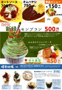 ほうじ茶の香るシフォンケーキに、榎本牧場さんのミルクアイスと抹茶クリームを重ねた、春の新緑をイメージした一品。