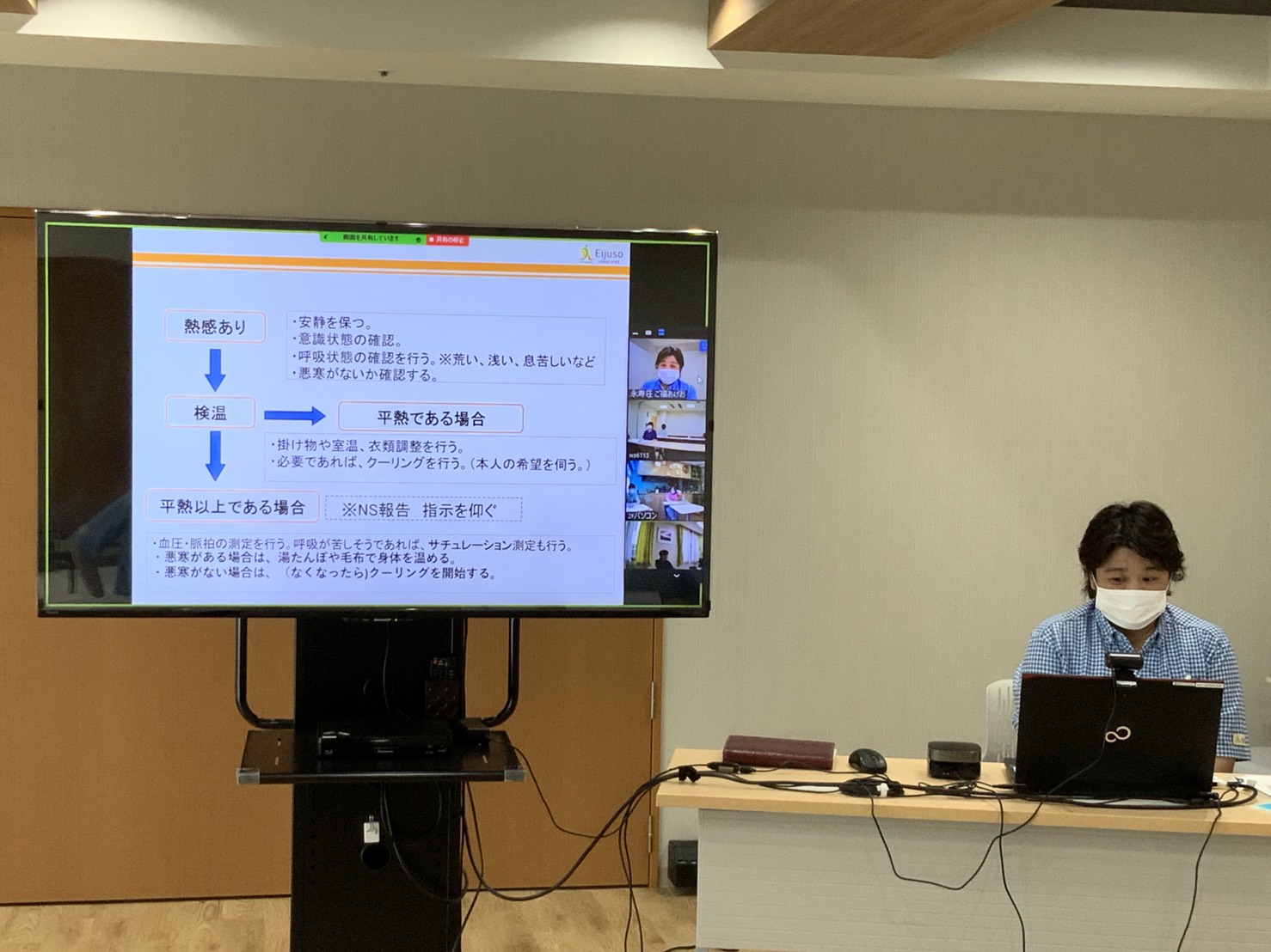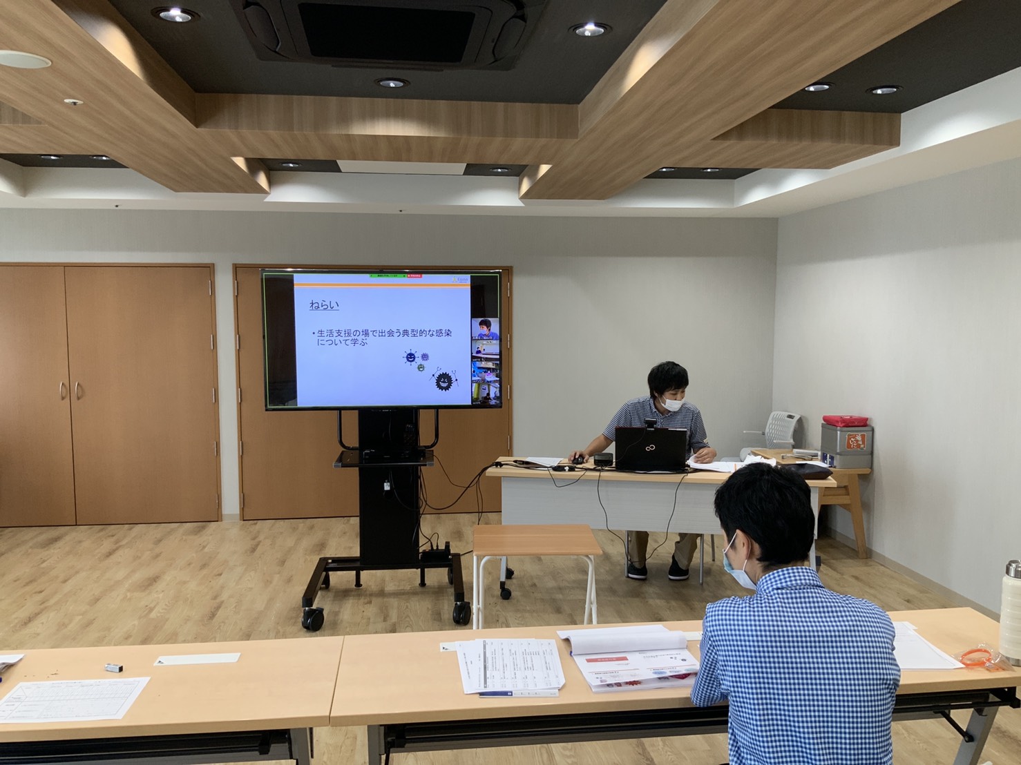 各施設の先輩職員が講師となり、オンラインで行われています。