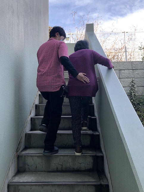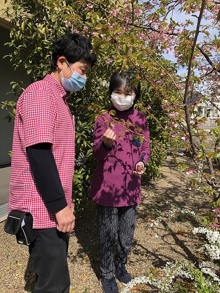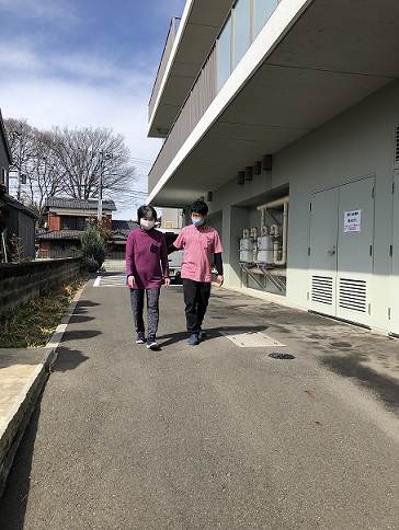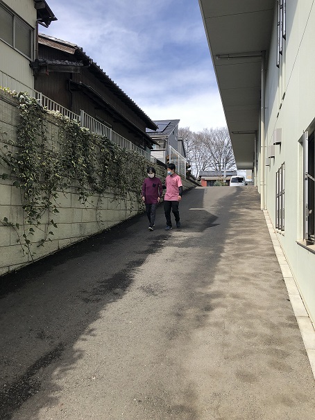 今日は天気も良く暖かかったので施設の周りをお散歩しました。