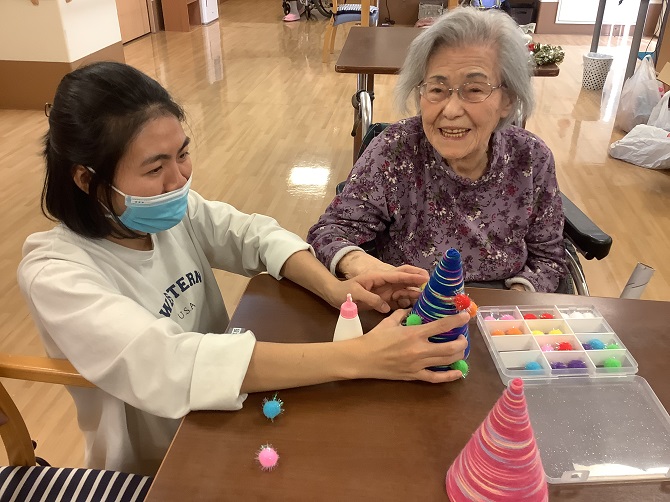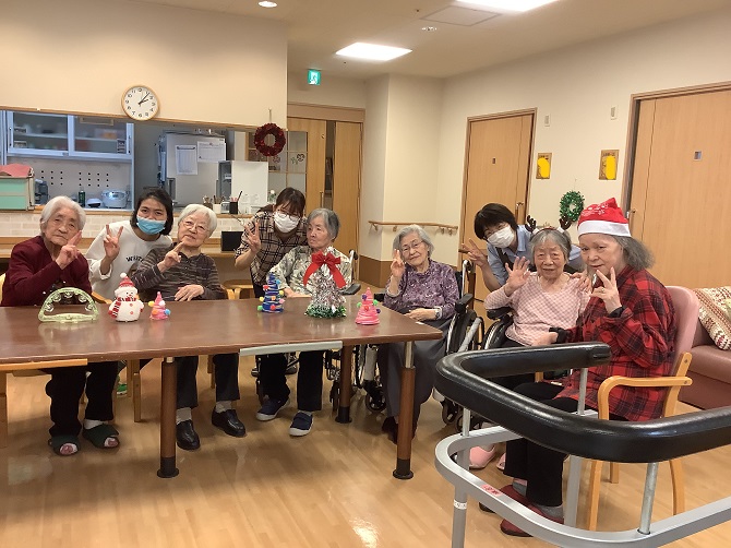 先日ユニットにお邪魔したら、クリスマスツリーの飾り付けをしていました![]()