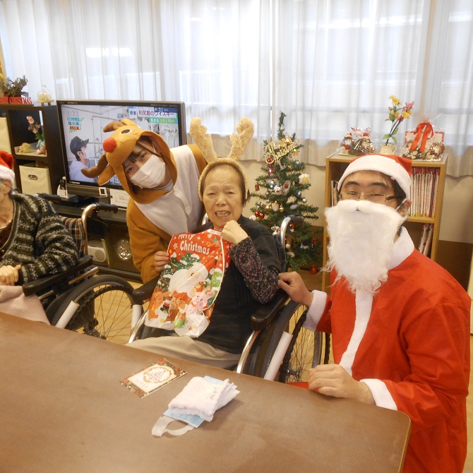 ご入居者様達へのプレゼントをたくさん持って登場![]()