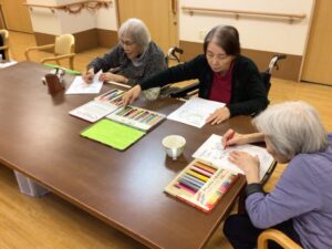 塗り絵になっているので、皆さんにお好きな色で塗っていただきました