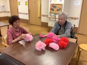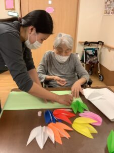 こちらの紅葉ユニットでは折り紙を使って色とりどりのチューリップを作成しています![]()