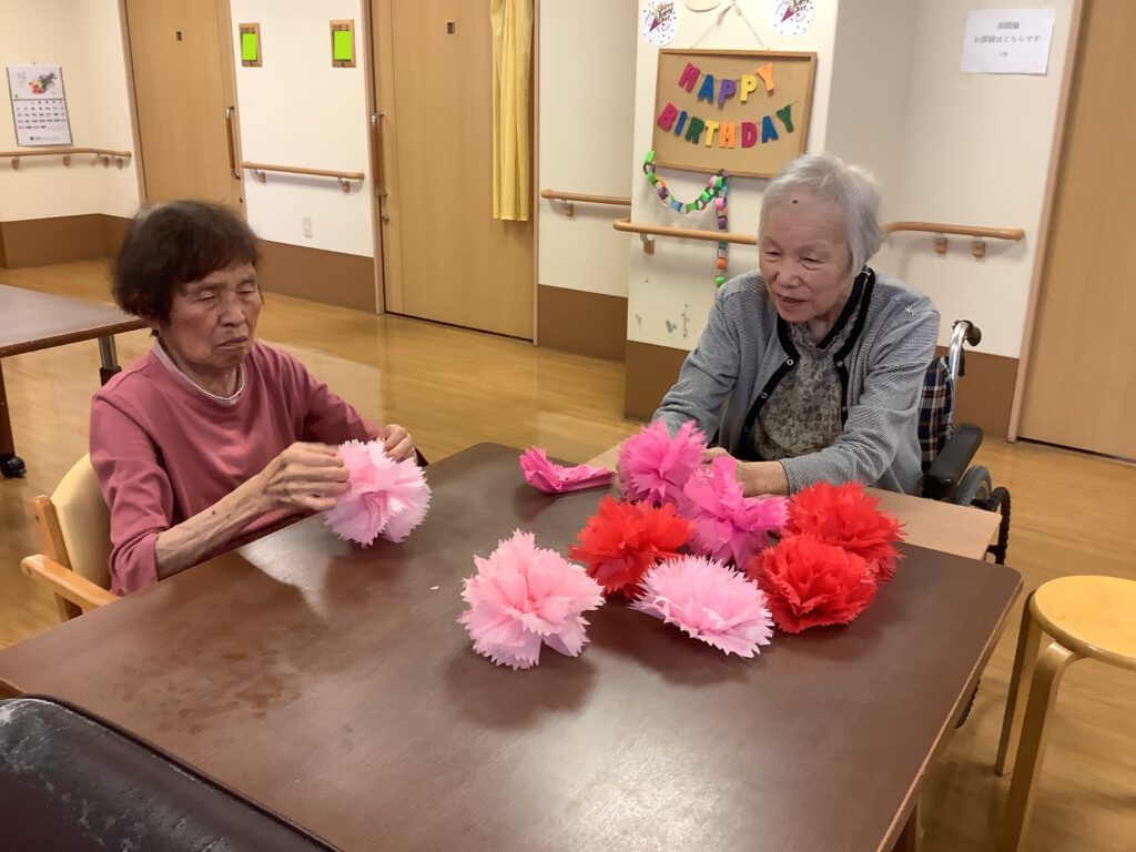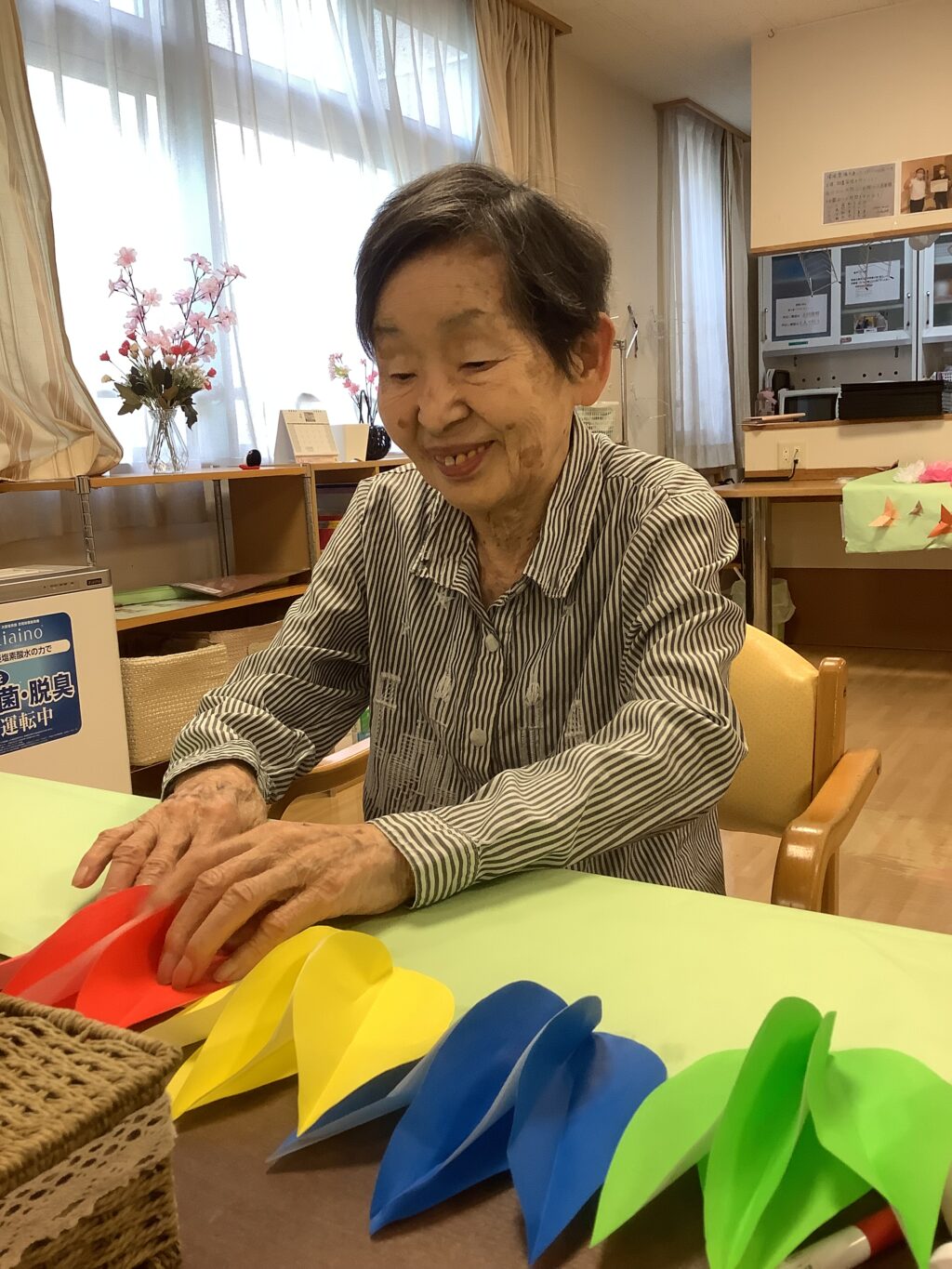 こちらの紅葉ユニットでは折り紙を使って色とりどりのチューリップを作成しています![]()