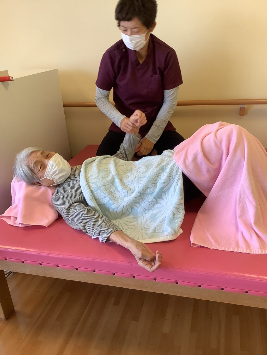 こちらの入居者様はマッサージの施術中です![]()