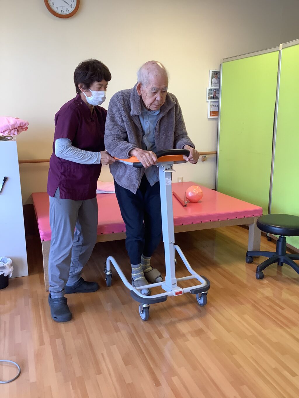 こちらの入居者様は歩行器を使って歩行のリハビリです![]()