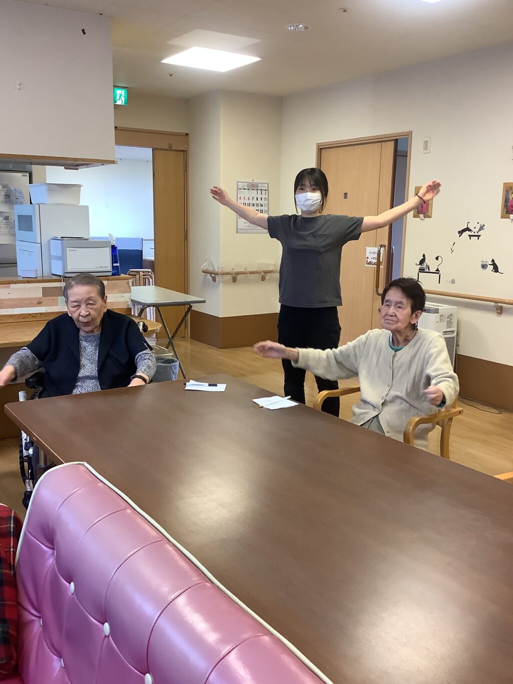 こちらは皆さんでテレビ体操しているご様子です