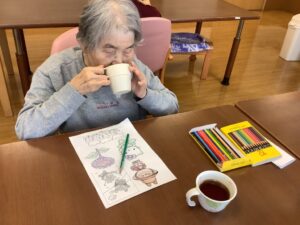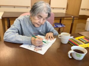こちらの入居者様は塗り絵を楽しんでいらっしゃいます