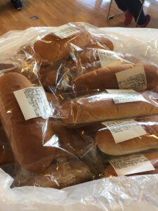 サンフレッセ伊奈工場様からいただいた支援品のパンも配布させていただきました