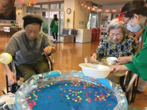 スイカ割り・スーパーボールすくい・わなげ・ヨーヨー釣り・射的と定番の催しを企画しました![]()