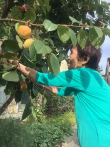 今羽の森にある柿の木の前で一緒に写真を撮らせていただきました