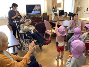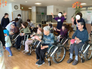 子どもたちの元気な声に入居者様も笑顔があふれていました![]()