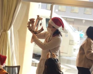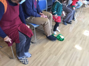 スリッパをサンタとトナカイに見立てて隣の人へスムーズにパス![]()