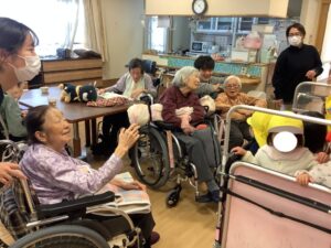子どもたちの元気な声と入居者様の嬉しそうな声が響いていました