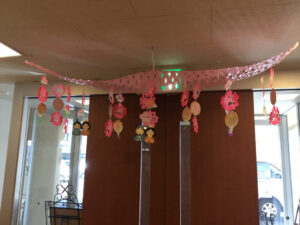 先日の節分が終わり、翌日から施設内の飾りも一気にひな祭り仕様にチェンジしました![]()