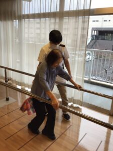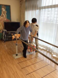 平行棒の間や歩行器を使って歩行訓練も実施しています