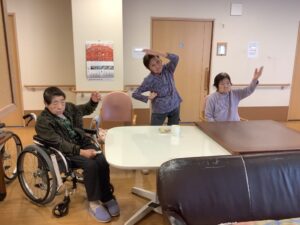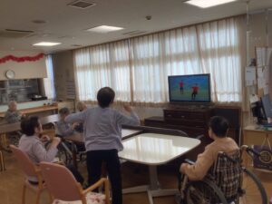 生活リハビリとしてテレビ体操を一緒に行うことも