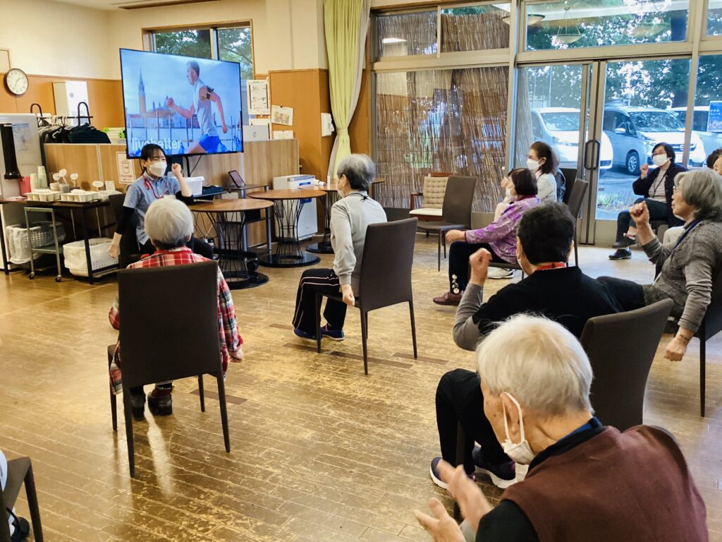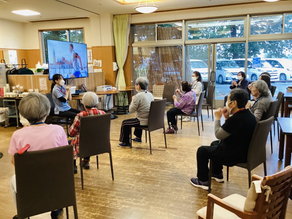 リズムに合わせて拍手や足踏み、ボクササイズの動きを取り入れ、大きく体を動かしていただきました💪