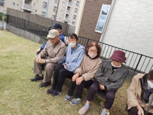 ウォーキングの休憩中に「くっつくとあったかいね」と、おしくらまんじゅうを始める方もいらっしゃいました☺️