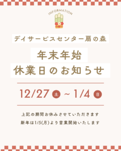 ・年内最終営業日:2025年12月26日 ・休業期間 :2025年12月27日〜2026年1月4日 ・年始営業開始日:2026年1月4日